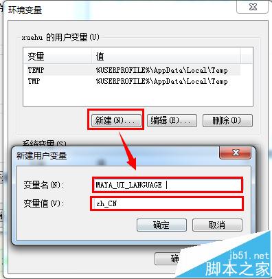 3、新建一个环境变量,变量名输入MAYA_UI_LANGUAGE ,变量值输入zh_CN就是启用中文界面,变量值输入en_US就是启用英文界面,根据你的需要进行修。