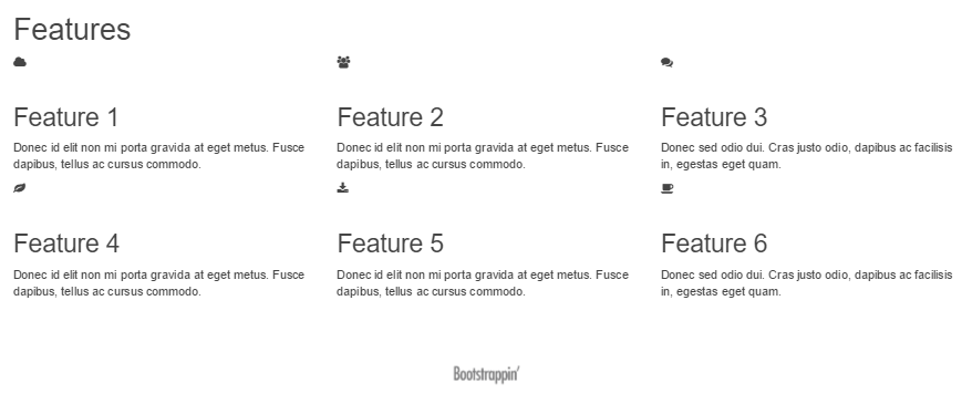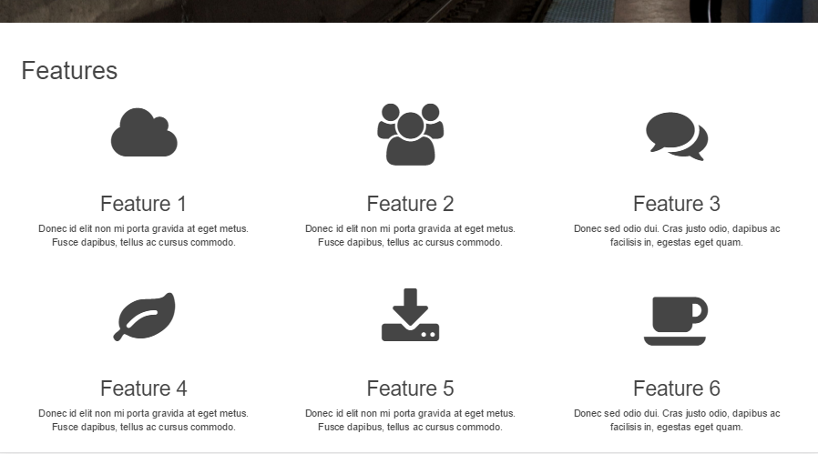 先来增强各部分的主标题。现在看一下这些标题,你会发现它们很不起眼。比如,就以 Features 部分为例吧: