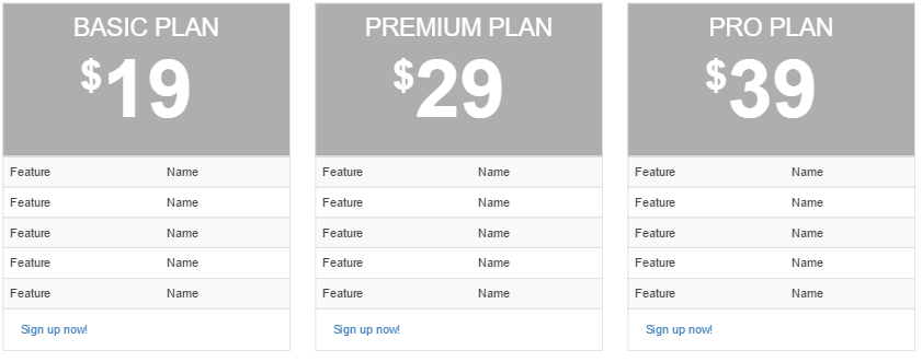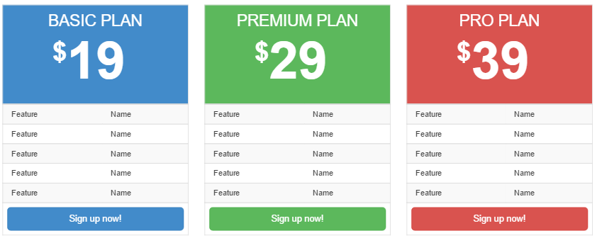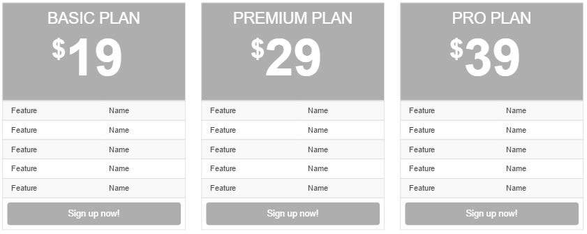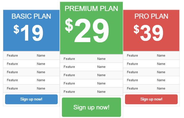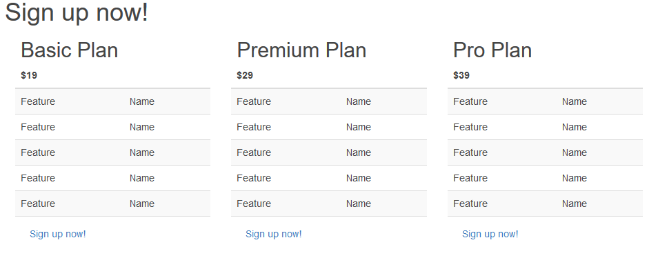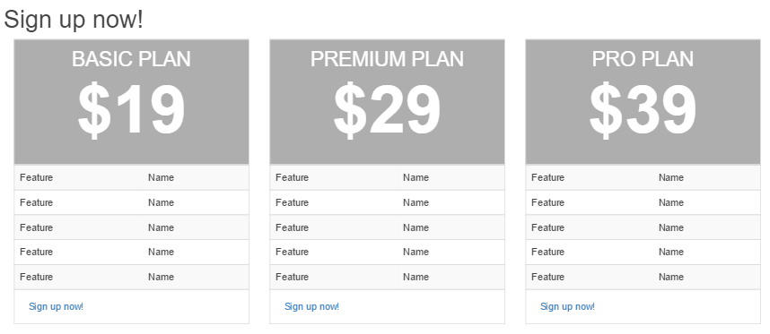 □ Sign up Now!部分是三张价目表,包括Basic Plan、 Premium Plan 和 Pro Plan,每个下面都有一个 Sign up Now! 按钮;