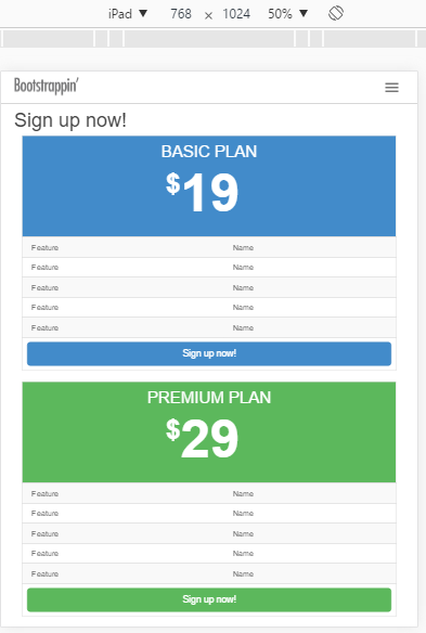 在这个媒体查询中,我们首先减少 Basic 和 Pro 表的宽度,再给它们添加一些上外边距,将它们向下推一下: