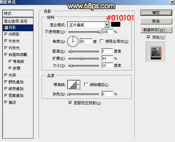 投影:颜色为暗红色:#010101,其它设置如下图。