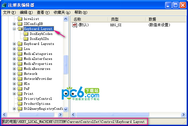 3.打开“注册表编辑器”窗口,在左侧窗口(注册表树)定位到以下分支