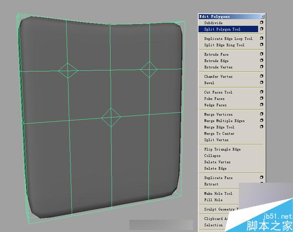 接着用做靠背的方法在模型上用Edit Polygon Split Polygon Tool加线工具在模型上画出四边形再将中间的点往下拖得出这样的效果(图18)接着将它按比例放好(图19)