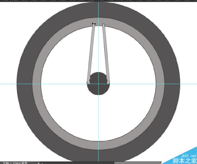 首先,利用“矩形工具”绘制长矩形,位置如图所示;一端在轴心侧边,一边靠在中心参考线旁边;