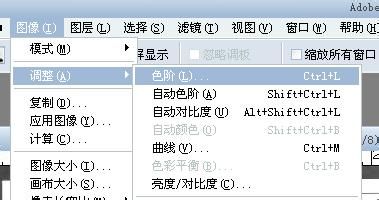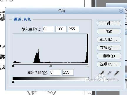 3、选择菜单栏"图像"点击选择"调整"在右侧打开菜单内选择"色阶"在打开的色阶窗口中,用鼠标拖动上边的移动块,向右拖动,这时候你会看到图片颜色变的黑白分明,拖动到适度的黑白即可.点击"好".