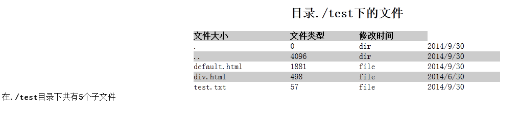 echo '<th>文件名</th><th>文件大小</th><th>文件类型</th><th>修改时间</th></tr>';
