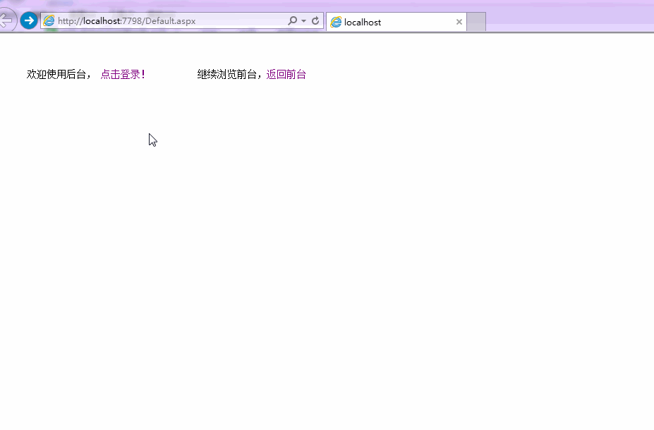 <div style="margin-left:50px; margin-top:50px; "> 欢迎使用后台, <a href="Login.htm?TB_iframe&height=180&width=350&modal=true" class="thickbox" id="myToolTip" title="点击登录,进入后台管理" > 点击登录!</a> 继续浏览前台,<a href="../Default.aspx">返回前台</a>