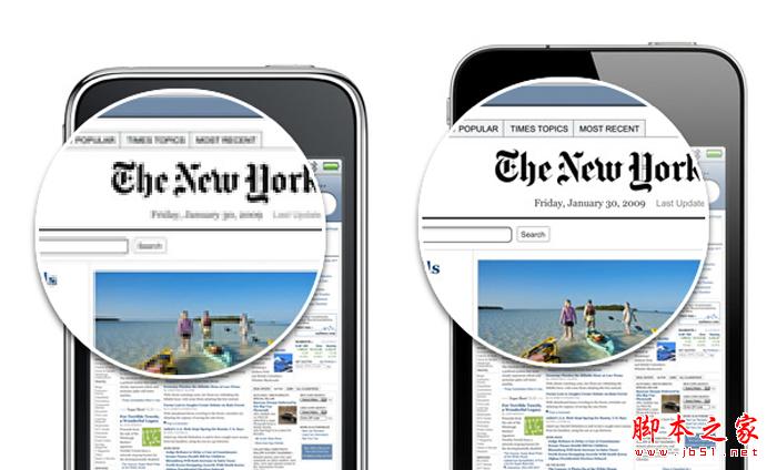 Retina Display 带来更细的精度,同时也给字体渲染带来了更多问题,由于在不进行缩放的情况下,显示普通图片时,它会用4个像素来显示图片中的1个像素;而在显示 retina图片时,每个像素都对应图片中的1个像素。因此一些字体比如Georgia 就会变得非常细,导致字体在显示时与设计时不一致,影响了体验。