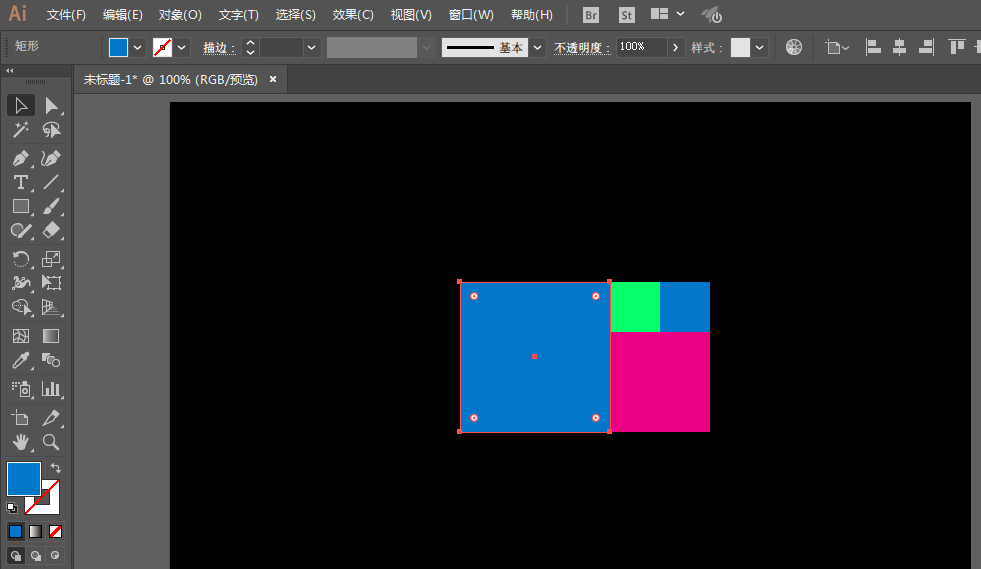 1、新建一个文件,用矩形工具绘制两个一样大小的正方形,一个较大的正方形。