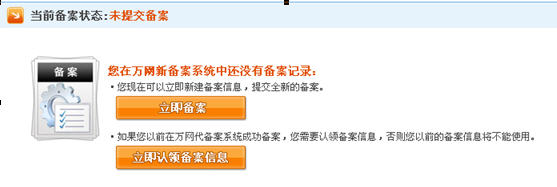 在万网新备案系统中还没有备案记录
