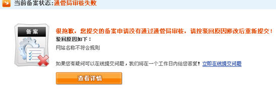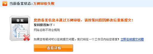 7、万网审核失败