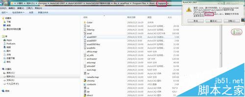 3、右键单击dfst.dll--剪切,并按错误提示打开CAD安装目录的Support文档。
