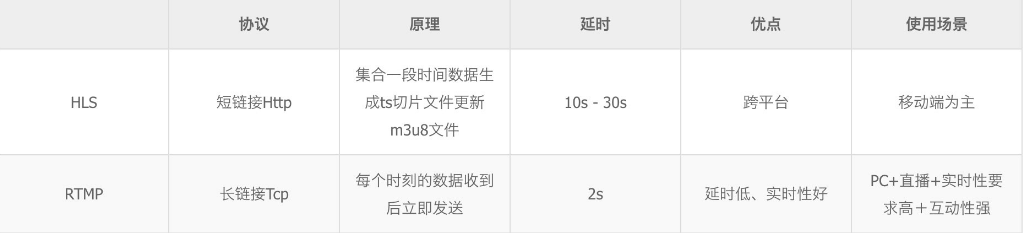 发现目前 WEB 上主流的视频直播方案有 HLS 和 RTMP,移动 WEB 端目前以 HLS 为主(HLS存在延迟性问题,也可以借助 video.js 采用RTMP),PC端则以 RTMP 为主实时性较好,接下来将围绕这两种视频流协议来展开H5直播主题分享。