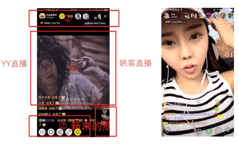 目前直播展示形式,通常以YY直播、映客直播这种页面居多,可以看到其结构可以分成三层: