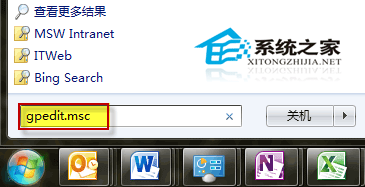 在开始搜索框中键入 gpedit.msc。回车,打开组策略编辑器。