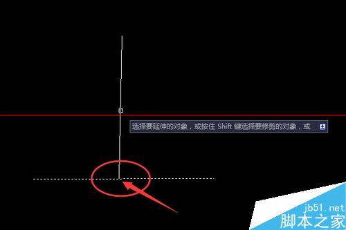 6、选择要延伸的目标,完成延伸操作。如图所示。