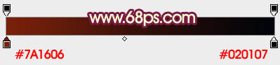 3、新建一个1024 * 768像素的文档,选择渐变工具,颜色设置如图4,然后由左下角至右上角拉出图5所示的径向渐变作为背景。