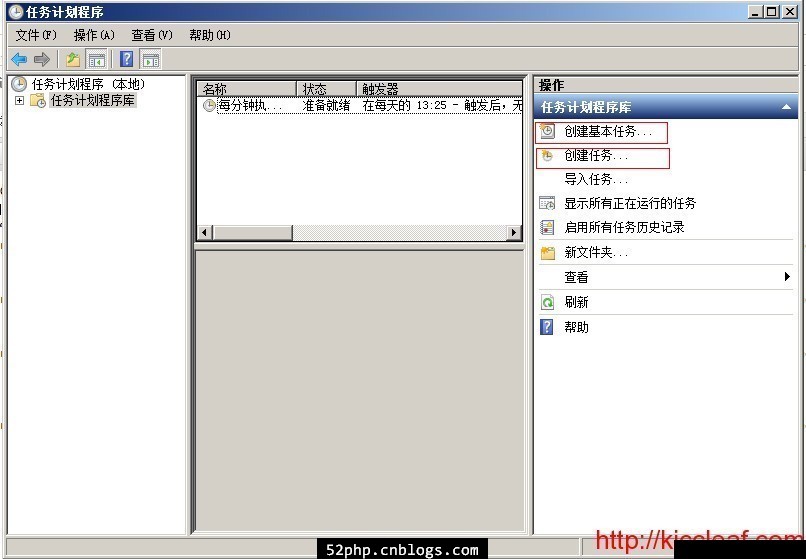 1、打开“任务计划程序”–> 点击“任务计划程序库”在右则会看到操作项里有“创建基本任务”和“创建任务”如图所示: