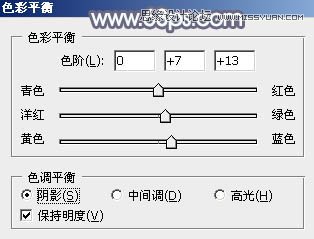 7、按Ctrl + Alt + 2 调出高光选区,按Ctrl + Shift + I 反选,然后创建色彩平衡调整图层,对阴影,高光进行调整,参数及效果如下图。这一步给图片暗部增加蓝色。