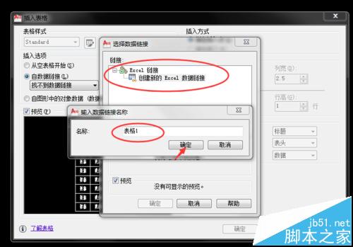 2、打开CAD,在命令栏键入table,弹出【插入表格】对话框 钩选【自数据链接】,并点击右侧图标