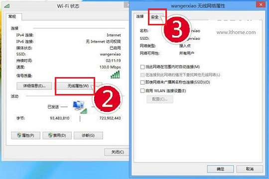 2.进入无线网络状态属性设置界面后,我们再选择“无线属性”,之后在弹出的界面中,切换到“安全”选项卡下,如下图所示: