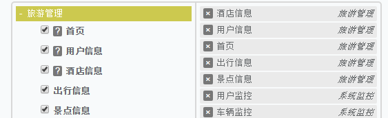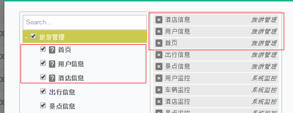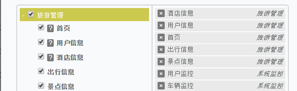'<option value="monitor_index" data-section="旅游管理" data-description="首页描述" selected>首页</option>' + '<option value="manage_logs" data-section="旅游管理" data-description="用户日志描述" selected>用户信息</option>' + '<option value="interface_logs" data-section="旅游管理" data-description="接口调用日志描述" selected>酒店信息</option>' + '<option value="abnormal_logs" data-section="旅游管理">出行信息</option>' + '<option value="empty_logs" data-section="旅游管理">景点信息</option>'