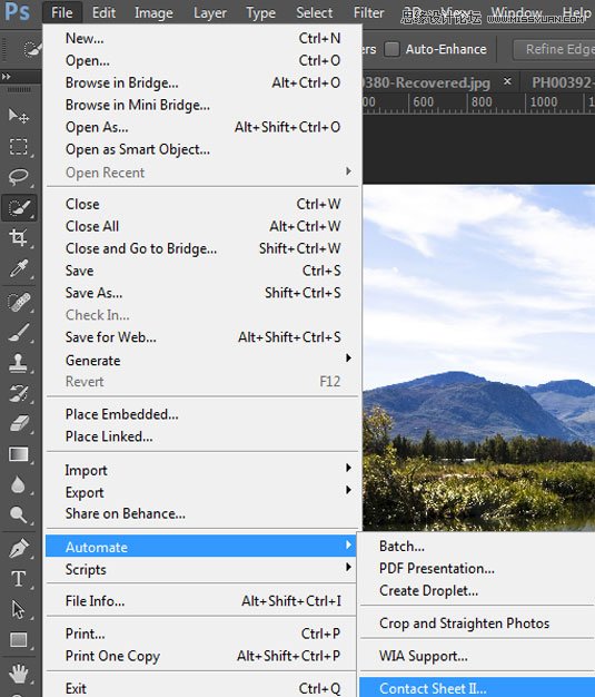 在Bright CC里,选择工具>Photoshop>联系表II。注意:选择此选项将直接进入到PS和联系表的对话框。