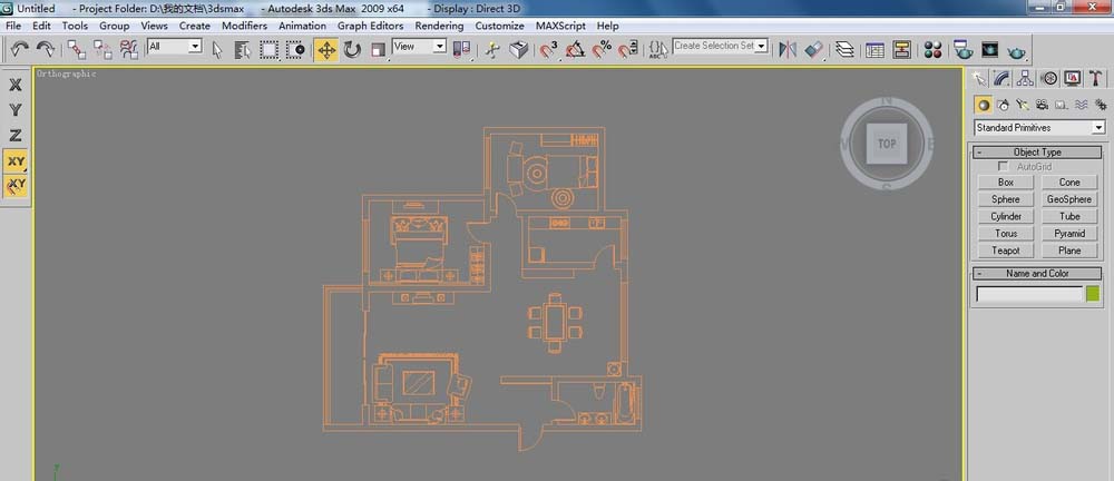 本实例通过导入一张完整的CAD图纸,使用【Line】(线)命令并配合捕捉绘制出墙体,执行【Extrude】(挤出)命令,生成一个套二双厅的墙体。