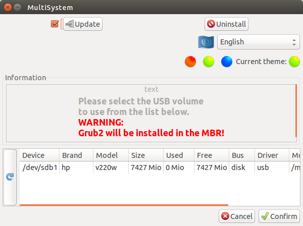 MultiSystem 安装完成后,可以插入你的USB,并通过Unity Dash或者菜单运行MultiSystem。