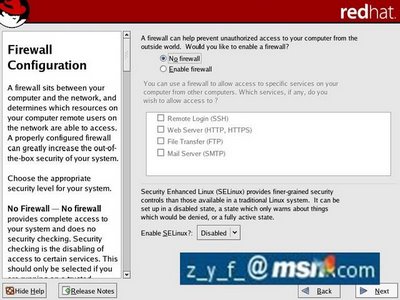 是否启用防火墙及Linux的语法检测,为了方便起见,都设成不启用,如上图示.不过各位如果有安全需要,可以按需开启.