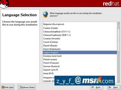 选择系统的语言,可以选"简体中文",但是在以后的安装中可能会出现乱码的现象,为了方便,选"English"