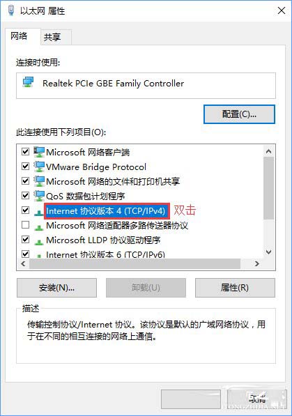 3、从打开的“本地连接 属性”窗口中,双击“Internet协议(TCP/IP V4)”;