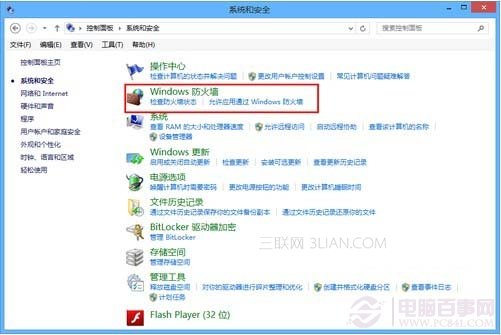 首先自然是要找到Win8中防火墙的位置。将鼠标移动至屏幕右下角调出“Charm栏”选择设置,在这里点击“控制面板”进入控制面板界面。再点击控制面板中的“系统和安全”打开系统和安全窗口,在这里我们就能看到“Windows防火墙”的选项了。