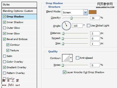 投影——我在这里使用了特别的投影样式。在右下部设置了1个像素的高光。这就是光(在这个例子中是从左上部过来的)打到边缘上的地方。