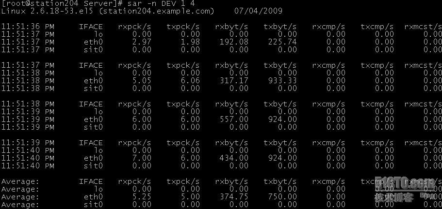 输入命令:sar –n DEV 1 4