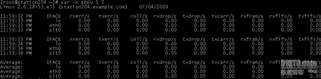 -n参数很有用,他有6个不同的开关:DEV | EDEV | NFS | NFSD | SOCK | ALL 。DEV显示网络接口信息,EDEV显示关于网络错误的统计数据,NFS统计活动的NFS客户端的信息,NFSD统计NFS服务器的信息,SOCK显示套 接字信息,ALL显示所有5个开关。它们可以单独或者一起使用。我们现在要用的就是-n DEV了。