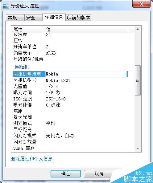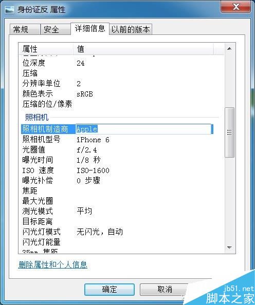 对于EXIF信息的查看,只要在资源管理器中打开相应的照片,然后右击选择“属性→详细信息”,接着在打开的窗口中就可以看到详细的信息了,如相机制造商、闪光灯模式等信息。
