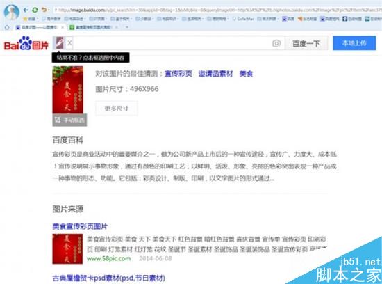 当发现一个图片是假的时候,如果我们需要原始的图片又该怎么去寻找?需要查找图片的原始出处,我们可以借助各类网络智能识图进行查找。如笔者在某QQ群看到一张适合制作易拉宝宣传使用的图片,但是图片大小只有496×966,显然这只是一张编辑过的小图,如果要制作易拉宝必须找到原始出处,下载PSD源文件才能够用于制作成品。现在打开http://shitu.baidu.com/,然后点击“本地上传”上传获得的小图,上传成功后百度会自动帮助我们查找到同类图片。
