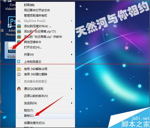 10、接下来就需要复制我们的刚才保存在桌面上的白云画笔。点击右键把它复制一下。