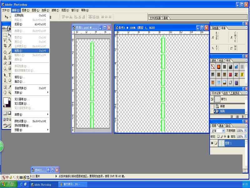 3、同理把竹叶也复制到青竹图纸上。并使用自由变换。