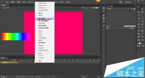 6、右击图层1的第20帧,在弹出的快捷菜单中选择"插入关键帧"命令,将矩形移至别处,如下图所示。