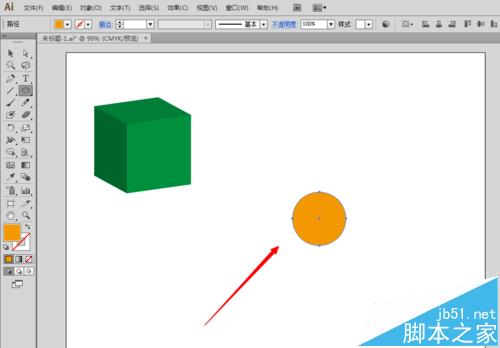 6、或者我们想要简单制作一个圆柱体的,先在画布上绘制一个正圆,比如填充颜色设置为橙色