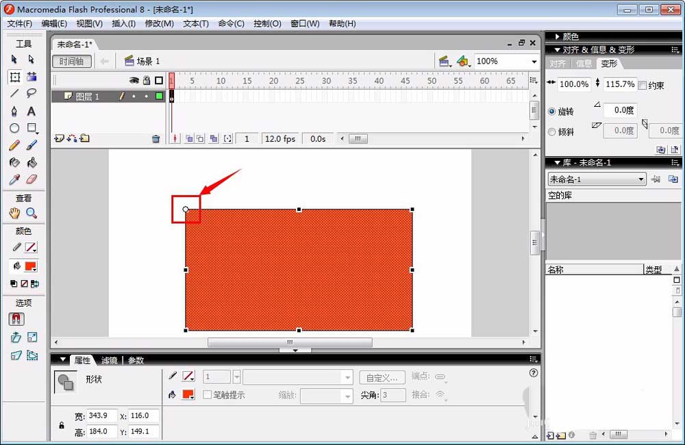 8、当鼠标在四个角变成环形的箭头时,那么可以旋转图形。