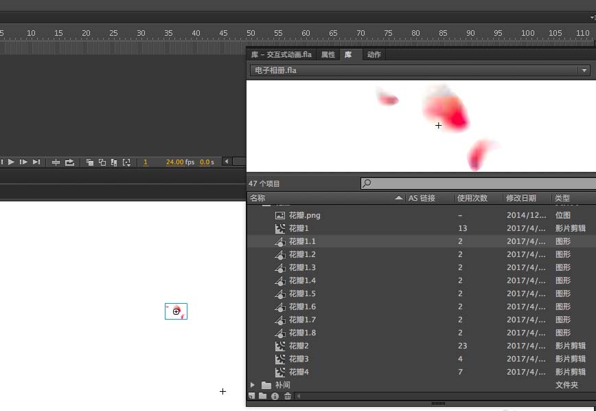2、然后我们需要制做的其实就是花瓣的部分,需要有一张花瓣的图,大家可以在网上找或者自己有也可以,拖进舞台中