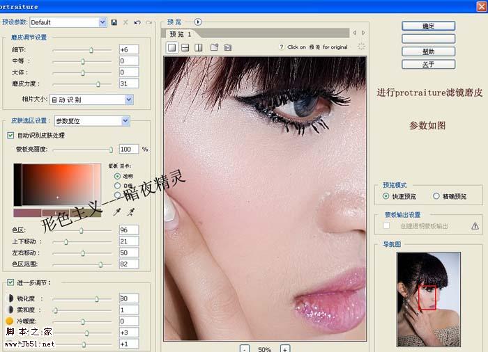 3、再用Portraiture滤镜进行磨皮锐化处理(如果没有这款滤镜,可以去网上下载),设置如下: