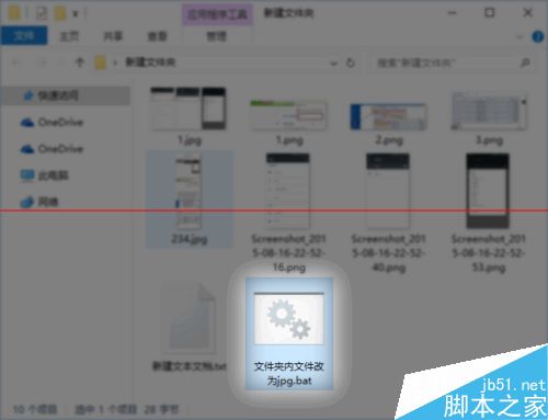 修改指定文件夹下文件的后缀名。如果需要将某一文件夹里文件修改后缀名为jpg类型的话(修改的后缀名是可以任意修改的),我们只需新建一个后缀名为.bat的批处理文件,把这个批处理文件与被修改后缀名的文件放在同一文件夹下即可,完成以后已管理员身份运行,批处理命令如下: