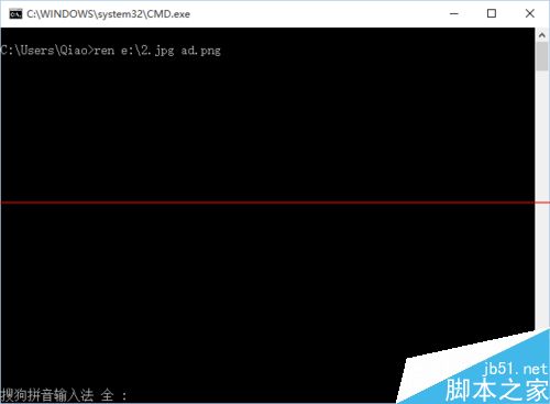 3、单个文件修改后缀名。利用ren命令,将E盘中的2.jpg重命名为ad.jpg,只需在命令提示符中输入"ren E:\1.jpg 2.jpg"命令,然后回车即可。