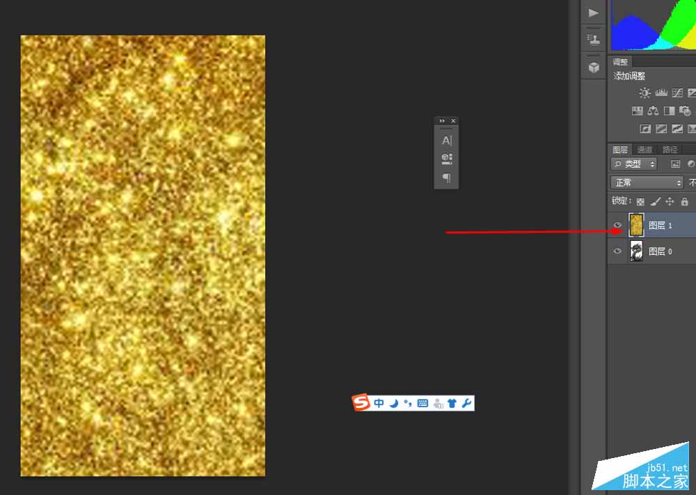 在ps软件中,打开一张龙的图片,接着再打开一张金箔的图层覆盖掉龙的图层,如图所示