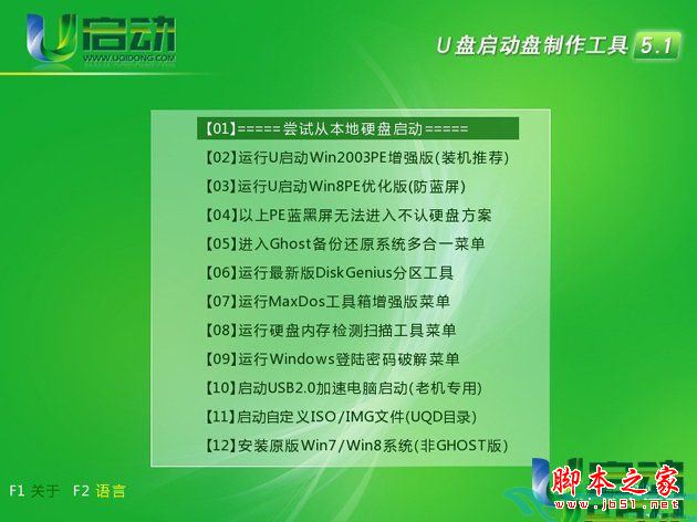 上述的操作完成后,电脑便会从u盘启动并进入主菜单。如下图所示: