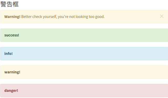 警告框是系统向用户传达信息和提供指引的重要手段。没有针对警告框的标签,通过bootstrap所提供的样式可以瞬间制作出漂亮的警告框。